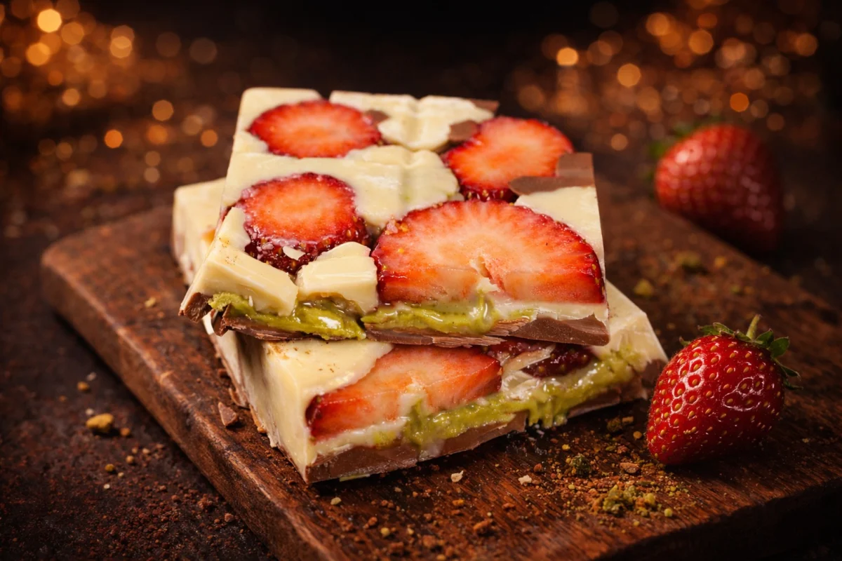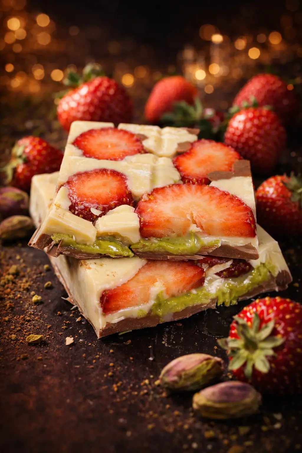 Ovo je Pistać & Jagoda – Voćna čokolada nastala iz želje da se spoje ukusi koji se prirodno dopunjuju. Bogat pistać krem, sočne jagode i kombinacija crne i bele čokolade čine ovu tablu laganom, ali punog karaktera.